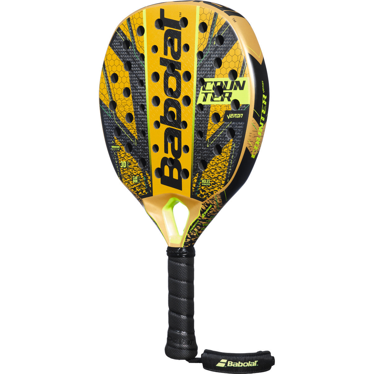 DYNAMIC POWER Experience maximum intensity with a carbon surface combined with X-EVA technology that delivers unprecedented explosive power. Make a difference and outperform your opponents. TOLERANCE Forgiveness is key. That's why this racquet features a shovel shape with a larger sweet spot. Get ready to return every ball—even the most challenging ones—to master the game again. COMFORT State-of-the-art VIBRABSORB SYSTEM² technology, Powered by SMAC, provides optimal vibration absorption to reduce the risk of injury.